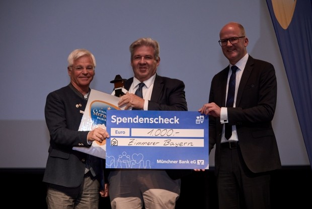 Traditionell überreichte der LIV im Rahmen des Festabends eine Spende in Höhe von 1.000 Euro an eine gemeinnützige Organisation am Veranstaltungsort. Präsident Peter Aicher und Hauptgeschäftsführer Kai Gajewski übergaben den symbolischen Scheck an das Kinderhospiz Sternenzelt Mainfranken e. V. aus Marktheidenfeld. Vereinsvorsitzender Stefan Zöller bedankte sich herzlich und berichtete von der Vision, das Vereinsheim zu einer Begegnungsstätte für Kinder und Eltern umzubauen.