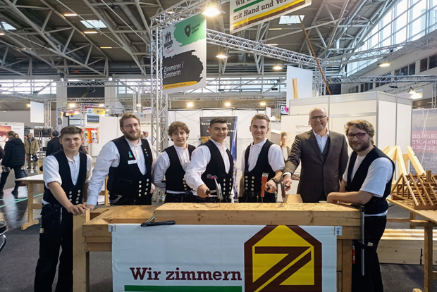 Von 8. bis 12. März fand in München die Internationale Handwerksmesse (IHM) statt – auf der Sonder- und Aktionsschau „YoungGeneration“ konnten sich Schüler direkt bei Auszubildenden über den vielseitigen Beruf des Zimmerers informieren.