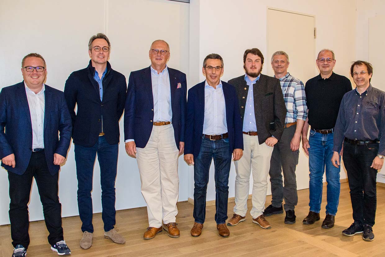 (v.l.) Christoph Schweyer (Geschäftsführer Kreishandwerkerschaft), Karl Schmiederer (Scheiffele und Schmiederer), Alexander Gumpp (Obermeister Zimmerer-Innung Dillingen), Erwin Taglieber (Kreisrat Donau-Ries), Leonhard Huber (Forstbetrieb Kaisheim), Johann Stuhlenmiller (FBG Dillingen), Franz Motz (Obermeister Zimmerer-Innung Donau-Ries) und Christoph Denzel (Holz Denzel).