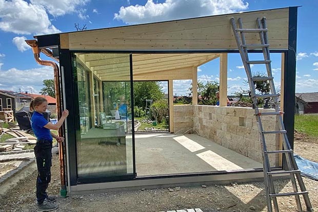 Als Pilot musste Gottfried Schlemmer (47) in der Corona-Lage um seine Existenz bangen. Deshalb fand er seinen Weg zurück ins Zimmererhandwerk. Er erzählt: „Mit dem Holzbau habe ich ein sicheres Standbein – einen Plan B, mit dem ich mich auch in Krisenzeiten über Wasser halten kann.“