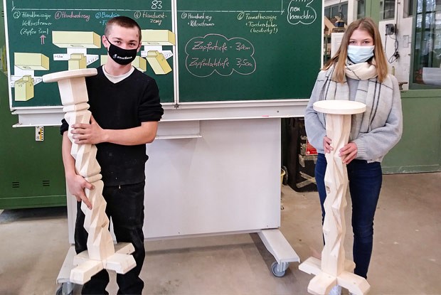 Demnächst haben die Zimmerer-Azubis Christina Hartl und Maxi Kirr ihr Berufsgrundschuljahr hinter sich. Währenddessen standen sie dem LIV immer wieder für Interviews zur Verfügung. Als Dank dafür erhielten sie Zimmerer-Werkzeug, damit sie gut gerüstet in die Ausbildung im Betrieb starten können.